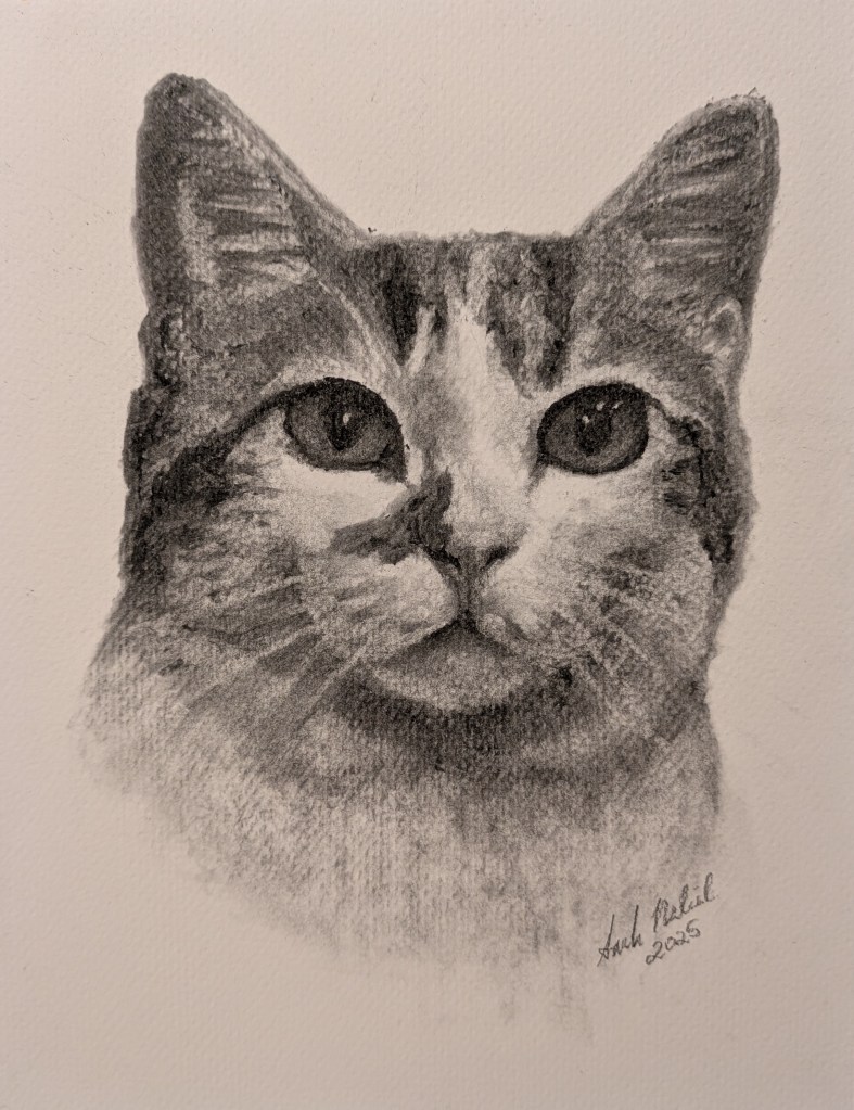 For over a decade, I’ve created custom pet portraits that serve as lifetime keepsakes — capturing not just the likeness of your dog, cat, or companion animal, but their personality and spirit. Each portrait is carefully drawn by hand in charcoal on 8.5×11 paper, with close attention to detail, expression, and the small features that make your pet uniquely yours.